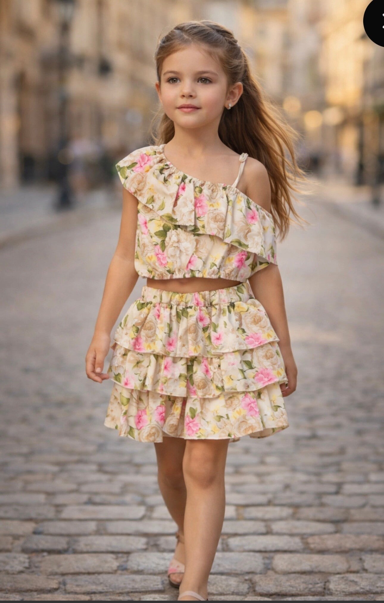 • Top: Een trendy one-shoulder model met een opvallende ruffle-rand en een elastische tailleband voor een comfortabele pasvorm.